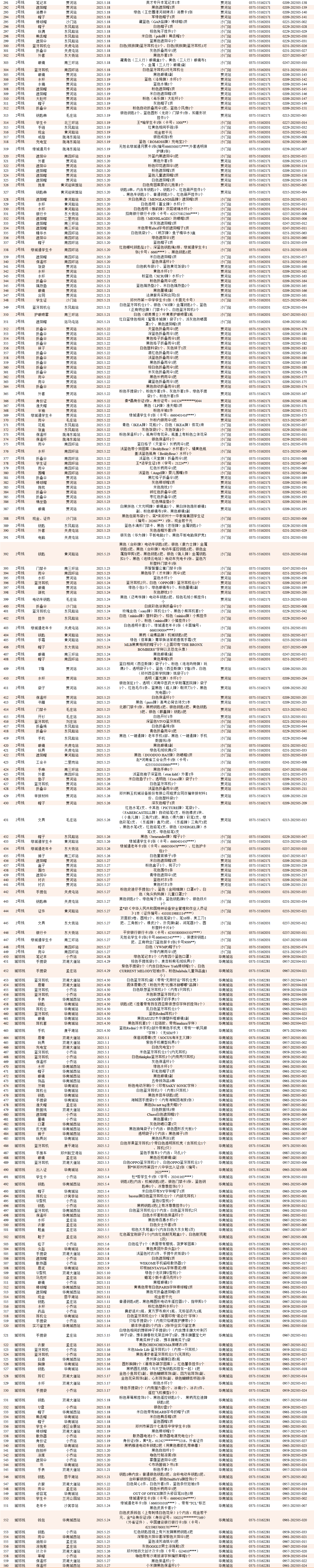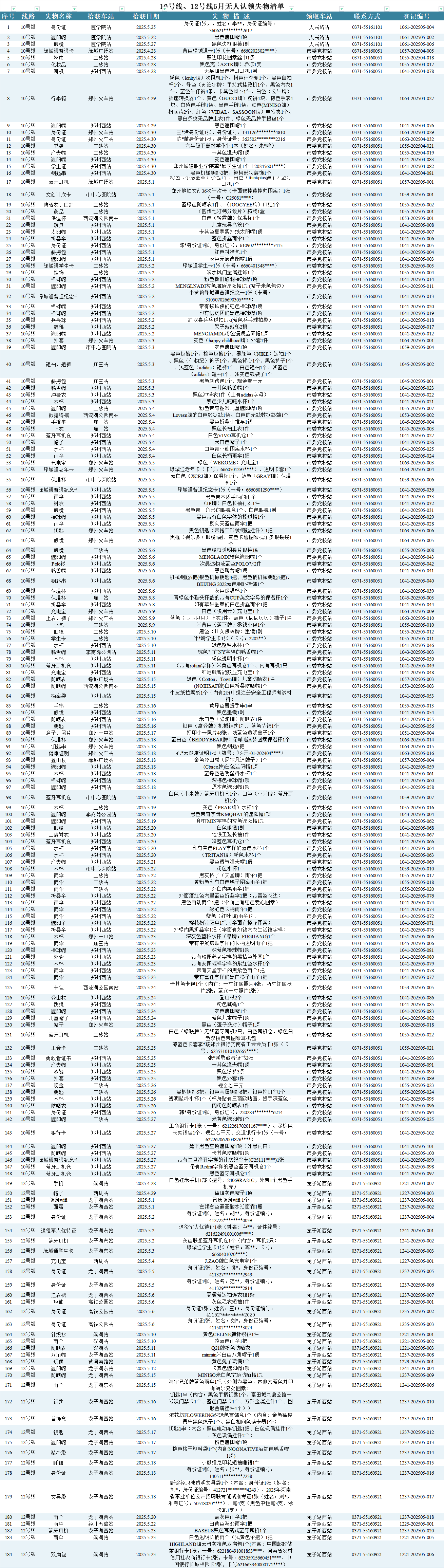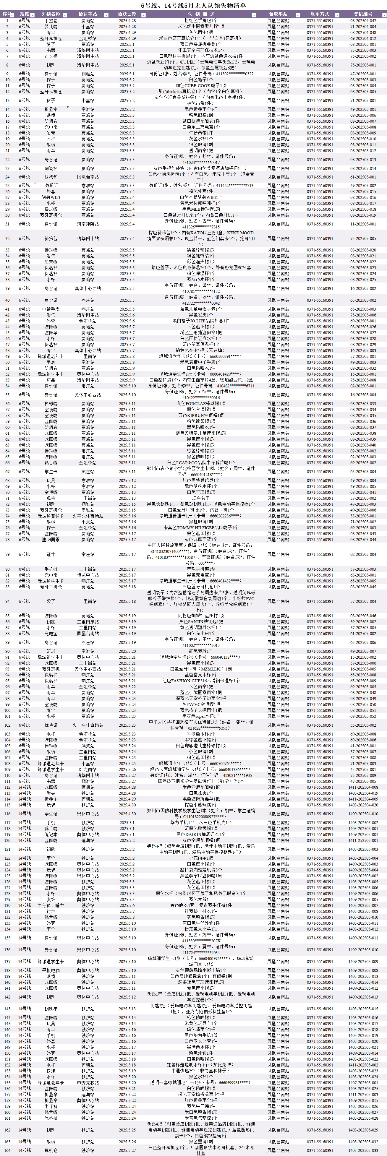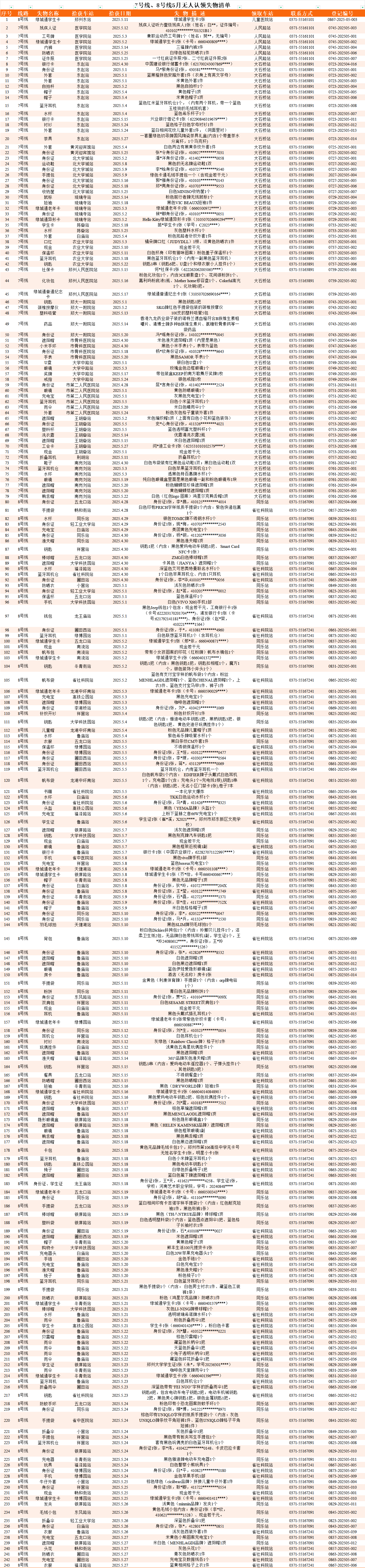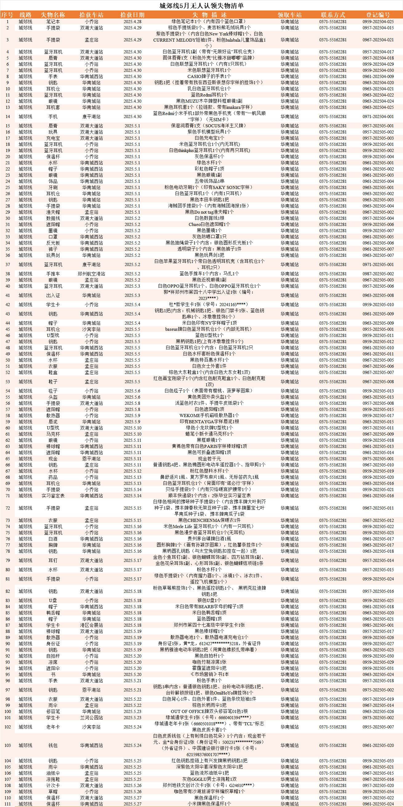 2025年4月28日—2025年5月28日车站无人认领失物情况