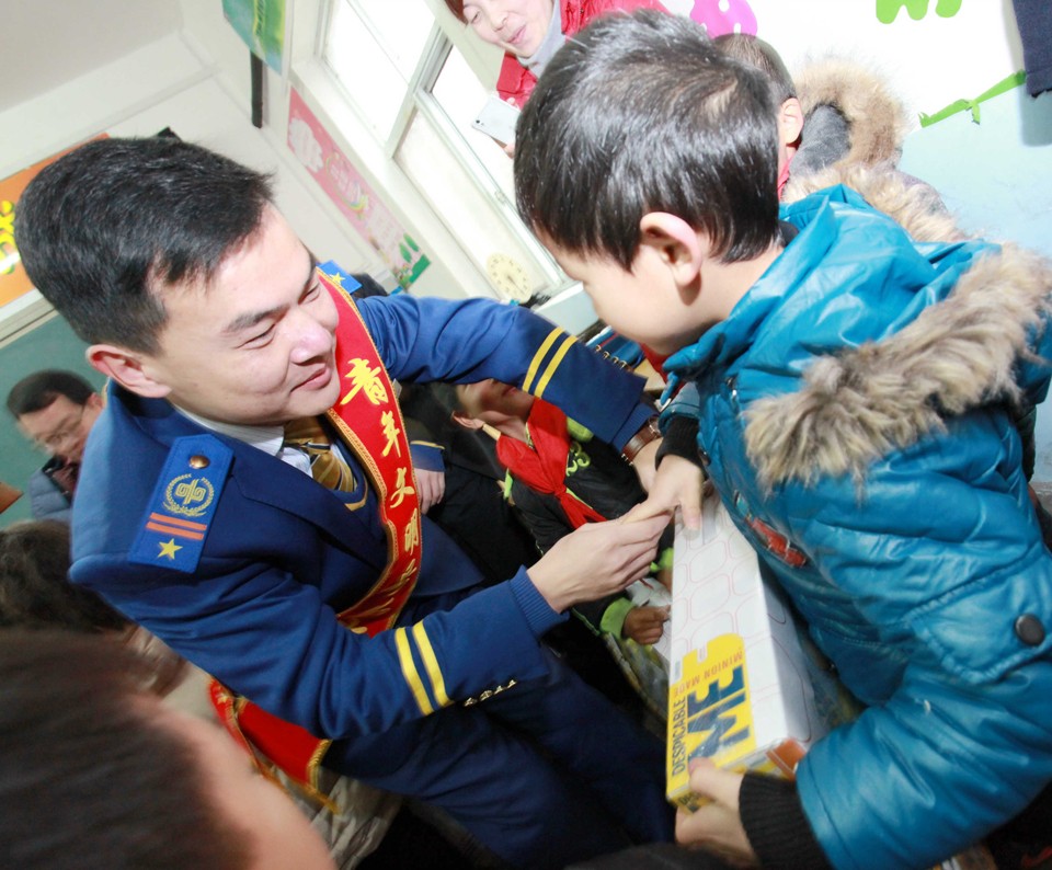 25日,由运营分公司省级青年文明号客车四队、市级青年文明号二七广场站、热线受理员、营销策划室组成的“点亮爱的圣诞树”活动之“圣诞老人”们来到了五虎沟小学,亲手为83位孩子们送上百余份书包、书本、文具、棉拖鞋、文体用品等圣诞礼物。熟悉的圣诞歌声萦绕耳边,圣诞树彩灯璀璨,爱的圣诞树被温暖点亮,孩子们童声齐唱《感恩的心》响彻整个学校,稚嫩、真挚的童音发自心田,让每一位员工热泪盈眶。